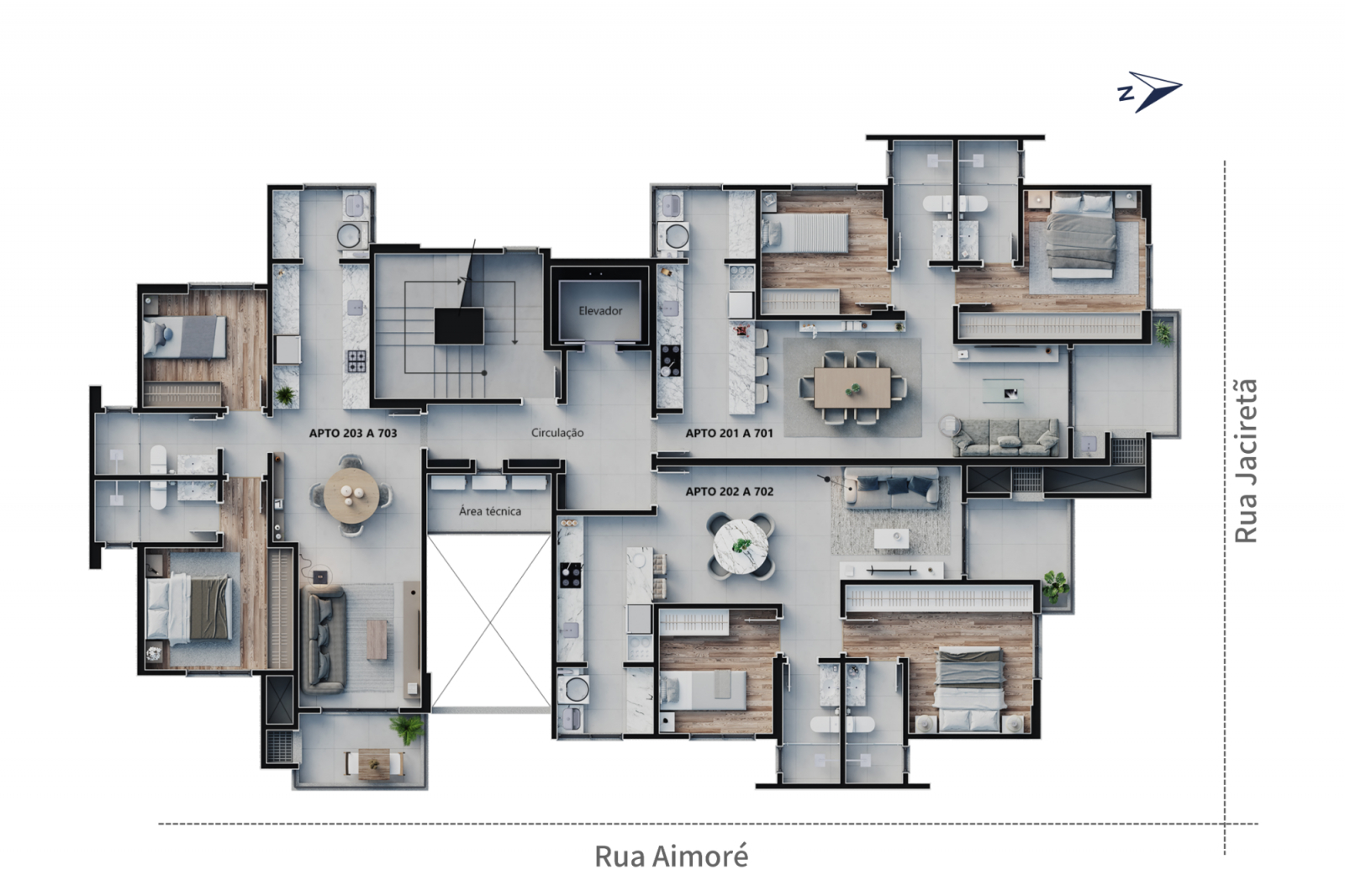 2º Andar | Ap.201 | Ap.202 | Ap.203 | |||||||
